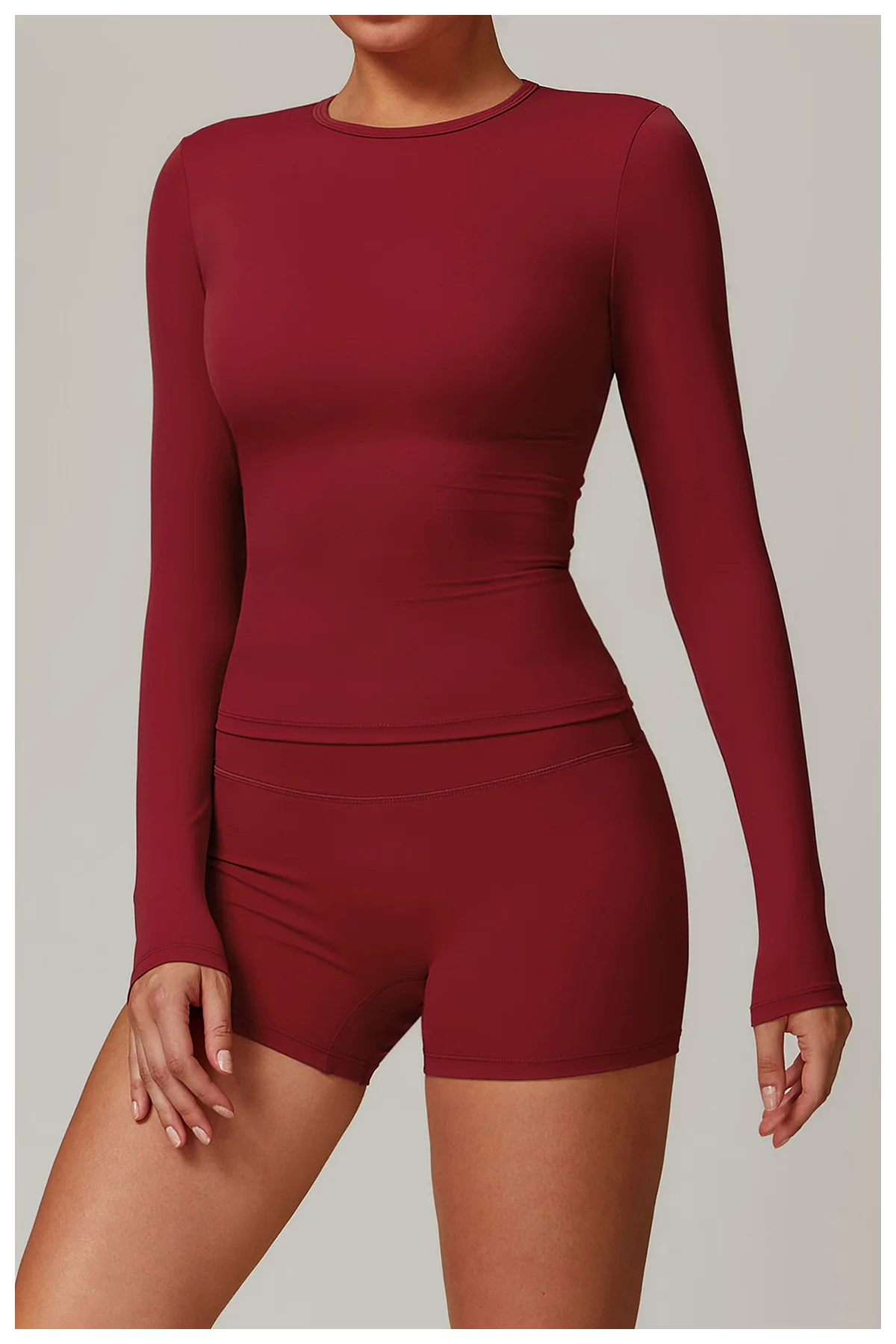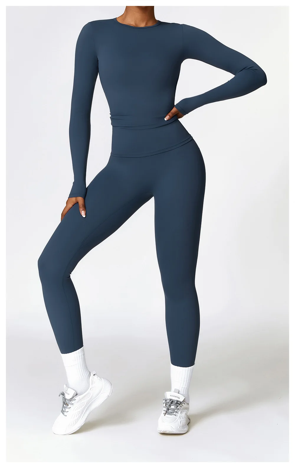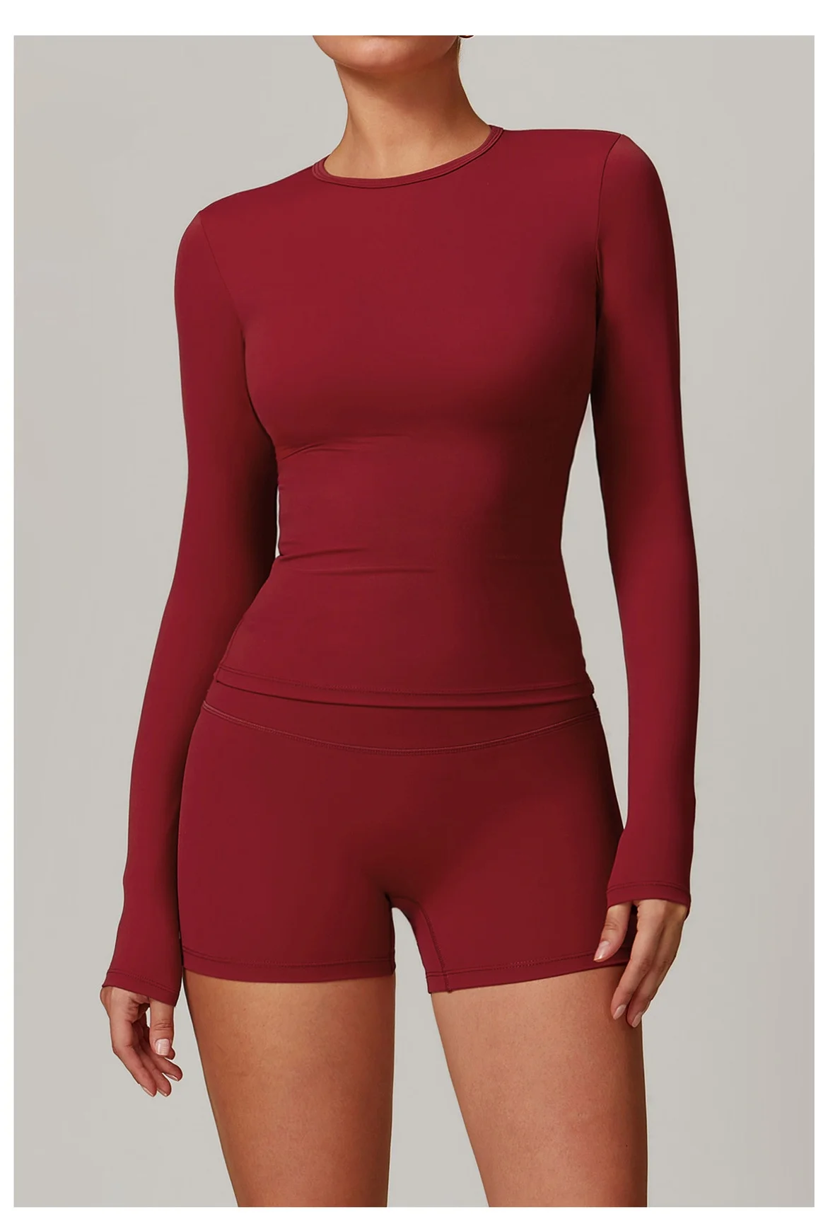 2Pcs Yoga Set Women Workout Tracksuit Gym Clothes Fitness Long Sleeve Shirts High Waist Leggings Set Sport Shorts Sleeves Suit