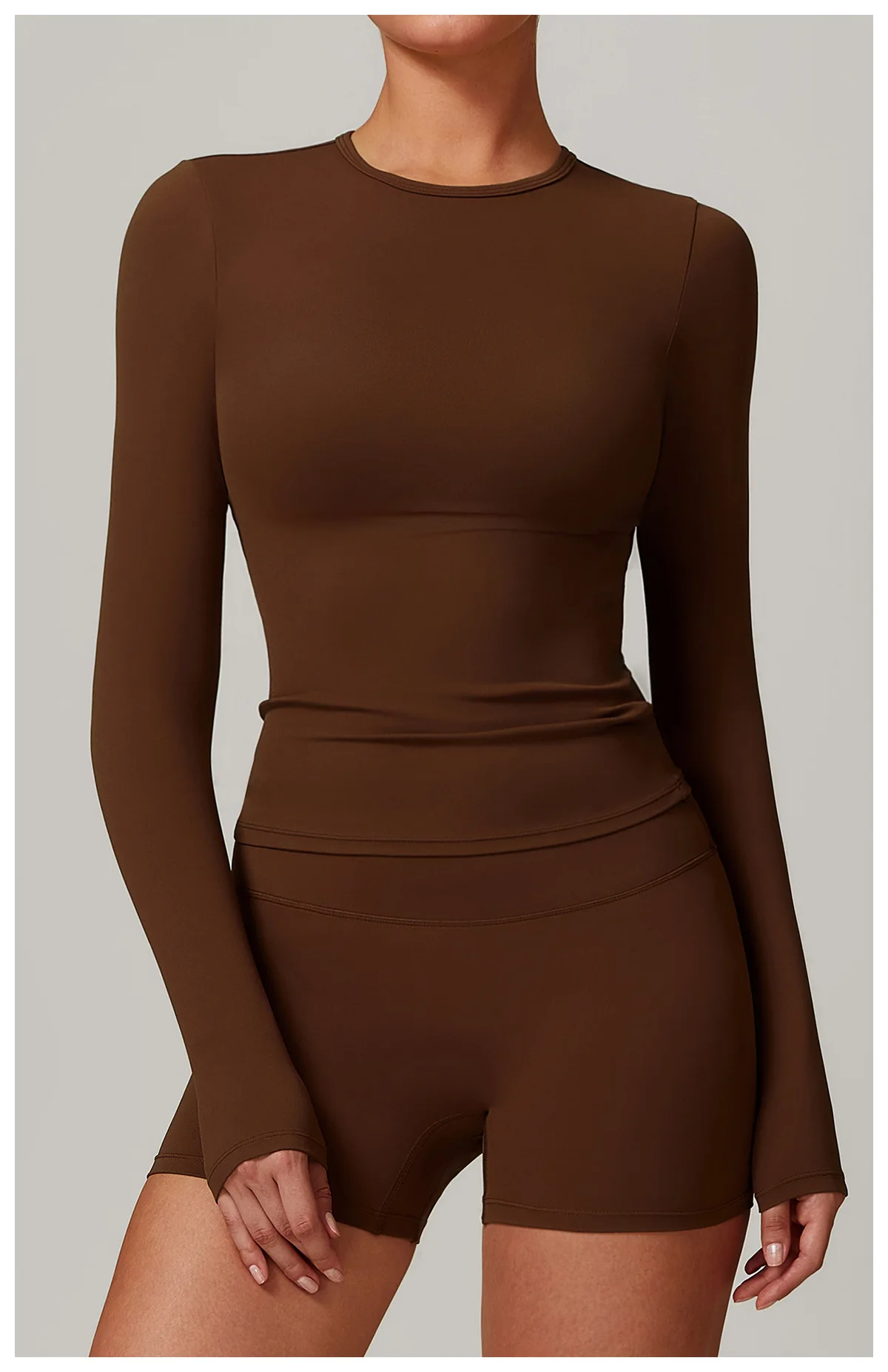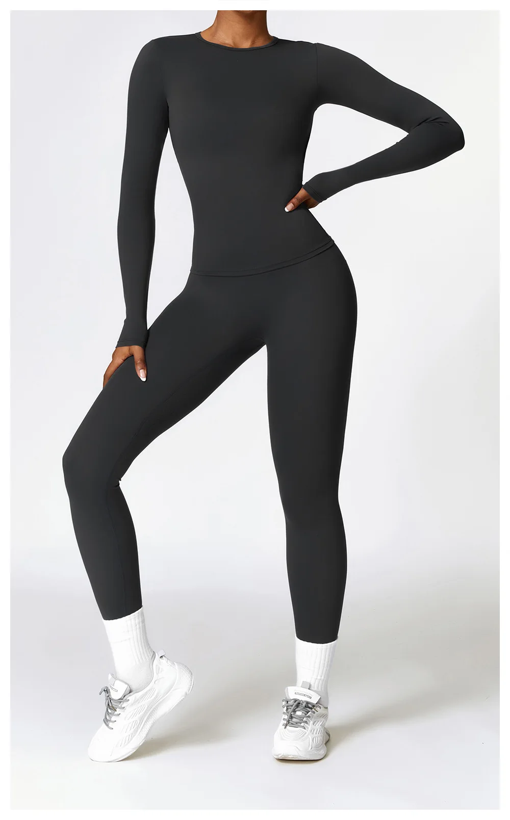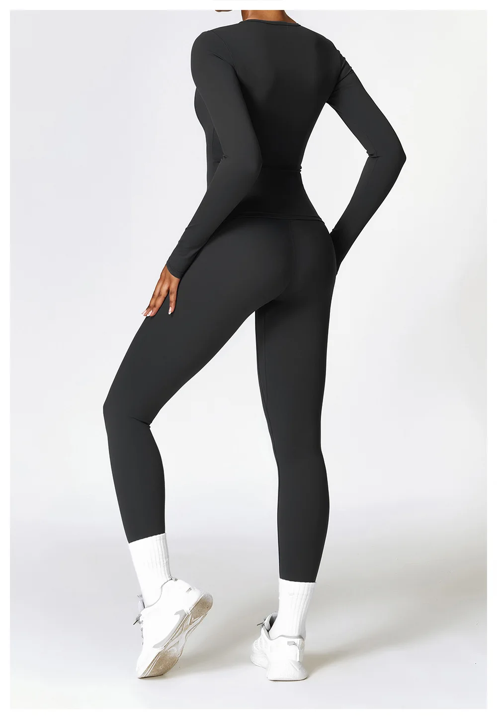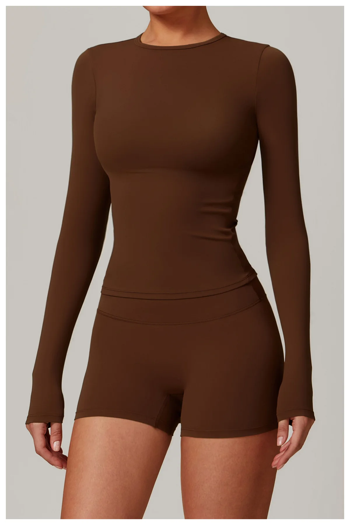 2Pcs Yoga Set Women Workout Tracksuit Gym Clothes Fitness Long Sleeve Shirts High Waist Leggings Set Sport Shorts Sleeves Suit